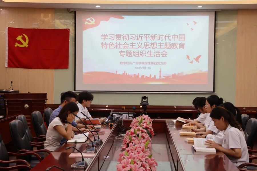 为深入学习贯彻习近平新时代中国特色社会主义思想,扎实推进主题教育向纵深发展,严格党员教育管理,加强党员队伍建设,提升基层党组织组织力。数字经济产业学院学生第四党支部于9月11日在第二行政楼208开展学习贯彻习近平新时代中国特色社会主义思想主题教育专题组织生活会,出席本次会议的有数字经济产业学院党总支书记汪椿东、学生第四党支部书记杨丹铭、党支部副书记陈雅玲及支部全体学生党员,会议由林浩华同志主持。