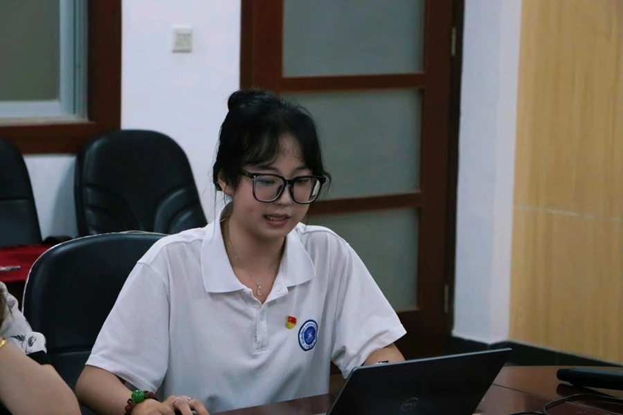 会议伊始,柳懿倪带领支部全体党员进行第一议题的学习——学习贯彻《习近平谈治国理政》,她以“领悟精髓要义,凝聚奋进伟力”为主题进行领学,通过讲解《习近平谈治国理政》第三卷概述和习近平同志《论教育》重要观点来带领支部党员学习相关内容,使参会党员对《习近平谈治国理政》有了更深入理解和更精准把握。她呼吁,党员干部应做到深化理论学习、努力提升专业技能、坚定理想信念,作为学生党员应积极发挥模范带头作用,参与社会实践以此来增强服务意识,为实现中华民族伟大复兴的中国梦而努力奋斗。