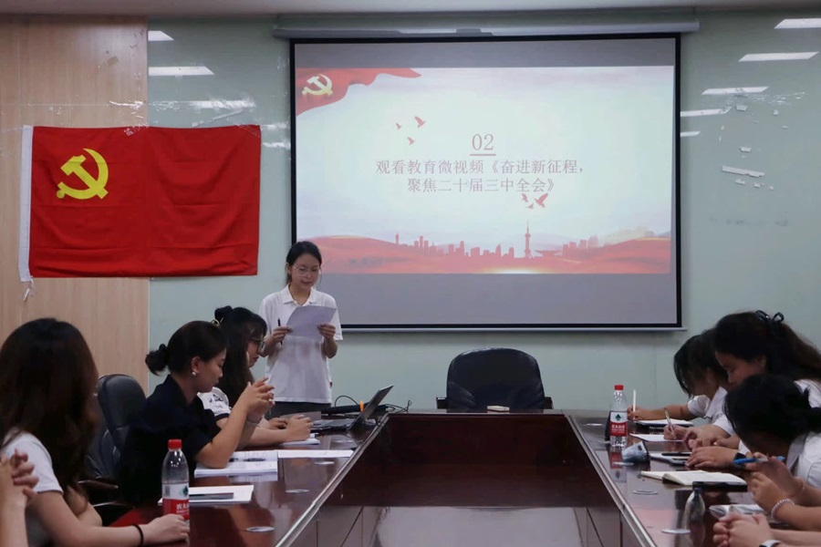 随后,支部党员统一观看了教育微视频《奋进新征程,聚焦党的二十届三中全会》。这部微视频以精炼而深邃的镜头语言,生动再现了中国共产党在百年征程中的光辉历程,并将焦点汇聚于党的二十届三中全会这一重要历史节点,让支部成员感受到了党在新时代背景下的奋进姿态与坚定决心,深刻体会到无论面对怎样的困难和挑战,只要我们紧密围绕在党的周围,矢志不渝地沿着中国特色社会主义道路稳健前行,定能共铸国家更加灿烂的未来。