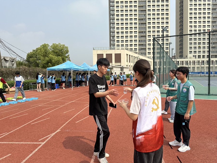 体测开始前,志愿者们积极参与各项准备工作,搭建帐篷、物资分发、协调分工,他们各司其职,将每一项细节都落实到位。在体测进行的过程中,志愿者们耐心引导同学们按照预定流程进行项目的测试。同时他们也时刻关注同学们的身体状况,及时提供必要的援助,如搀扶、递水、提醒休息调整,甚至在遇到突发情况时,能够迅速响应,冷静处理,有效保障了体测过程的安全。