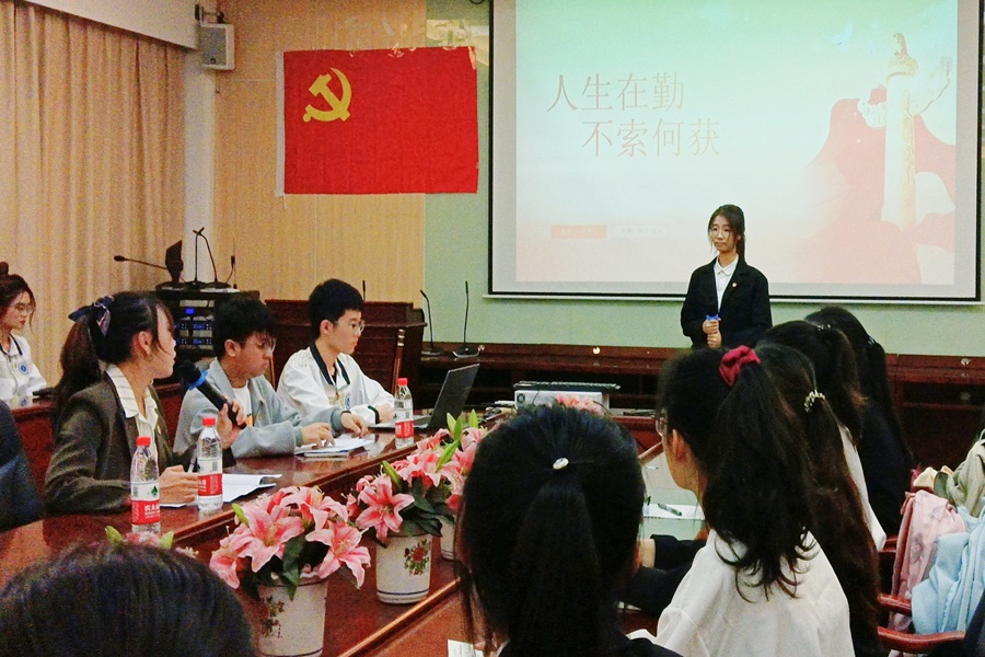 最后,杨丹铭对会议进行总结并对支部成员提出三点要求:一是要牢记中国共产党全心全意为人民服务的根本宗旨,向优秀党员学习,发挥好先锋模范作用,在日常的学习生活与工作中做到全心全意为同学服务;二是要坚持学习政治理论知识,真正做到组织上入党一生一次,思想上入党一生一世;三是务必不忘初心、牢记使命,端正入党动机,坚定理想信念,为奉献国家社会和实现个人价值奠定坚实基础。