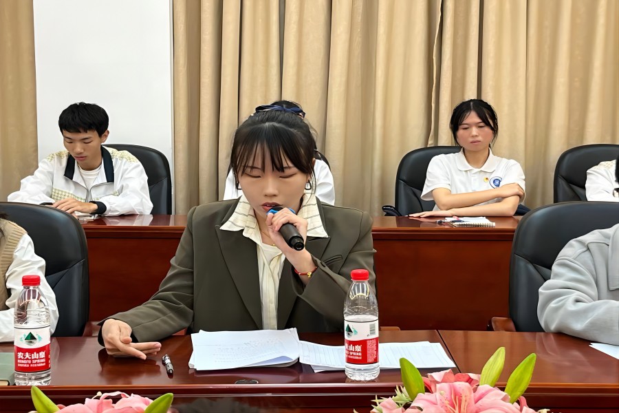 会议伊始,翁佳霖带领全体成员学习习近平文化思想,深刻认识习近平文化思想的重大意义。他分别从时代意义是铸就社会主义文化新辉煌的行动指南、理论意义是创造性地发展了马克思主义文化理论和世界意义是为人类文明发展贡献“中国智慧”这三个方面为切入点进行领学。他强调,新时代青年一定要坚定文化自信,保持高度的文化自觉,要时刻铭记自身责任与担当,主动继承与发扬革命文化,铸牢爱国之心。