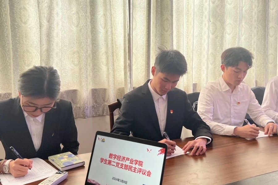 为深入学习贯彻党的二十大精神,坚持不懈用习近平新时代中国特色社会主义思想凝心铸魂,增进党员之间的思想交流,切实做好2023年度民主评议工作。数字经济产业学院学生第二党支部于3月8日在第二行政楼201会议室开展“砥砺奋进勇攻坚,自我革新再出发”专题民主评议党员大会,出席本次会议的有数字经济产业学院学生第二党支部书记袁小蕾、组织委员赖彦霖、宣传委员蔡警桃及支部全体党员。