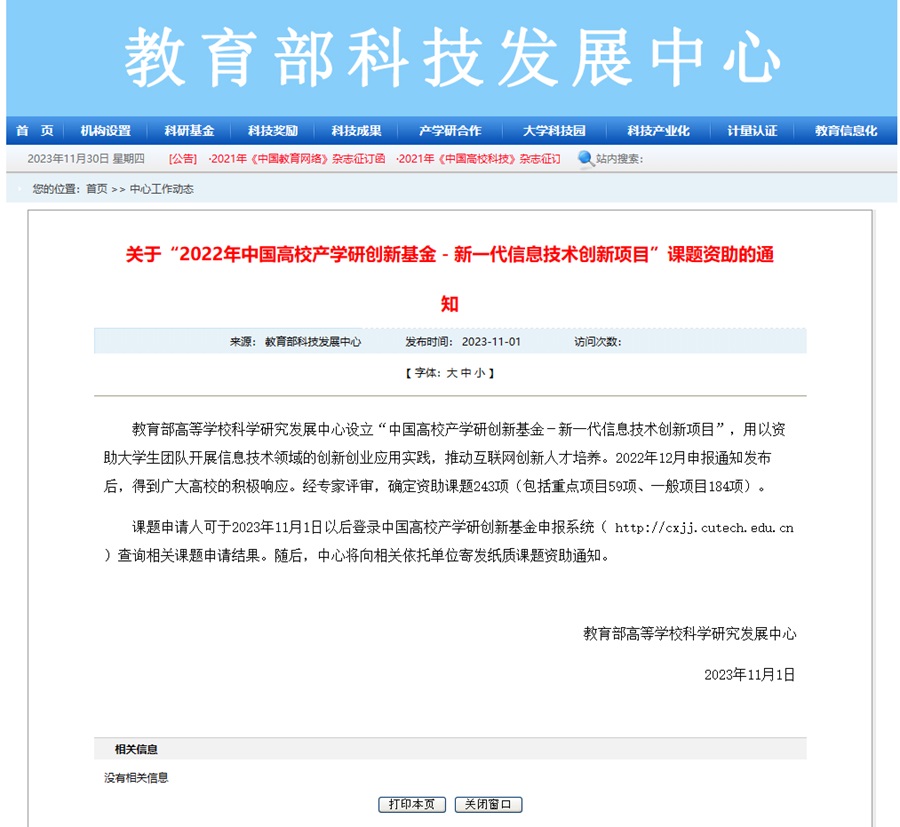 “2022年中国高校产学研创新基金-新一代信息技术创新项目”的资助通知