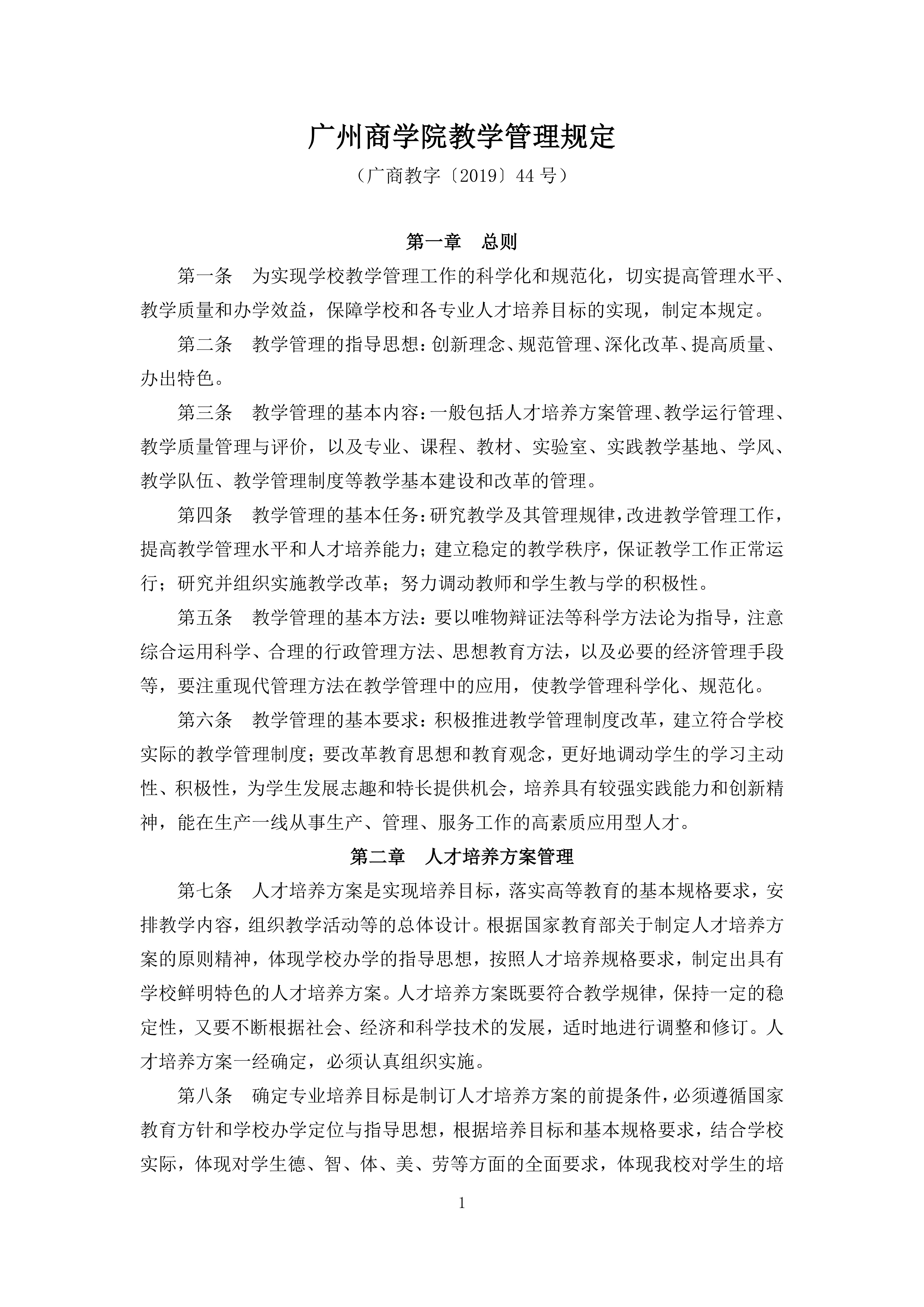 广州商学院教学管理规定(广商教字〔2019〕44号)