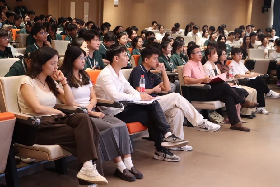 学生会骨干刘韫嘉代表工作人员发言,他提出校运会赛场是体育竞技的场所,也是体育健儿展示拼搏精神、展现青春力量的舞台。团学工作人员会秉持着“全心全意为同学服务”的宗旨,关心运动员的需求和感受,给予他们支持与鼓励,履职尽责,积极沟通。