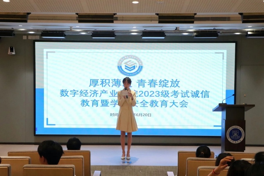 为进一步深化学生对优秀毕业生评选及考公考研等关键话题的理解,同时强化学风建设,营造积极向上的育人环境,提升人才培养质量,广州商学院数字经济产业学院2023级特此于2024年6月20日在八教201召开“厚积薄发,青春绽放”年级大会。数字经济产业学院2023级辅导员翁佳霖及2023级全体学生参加本次会议。