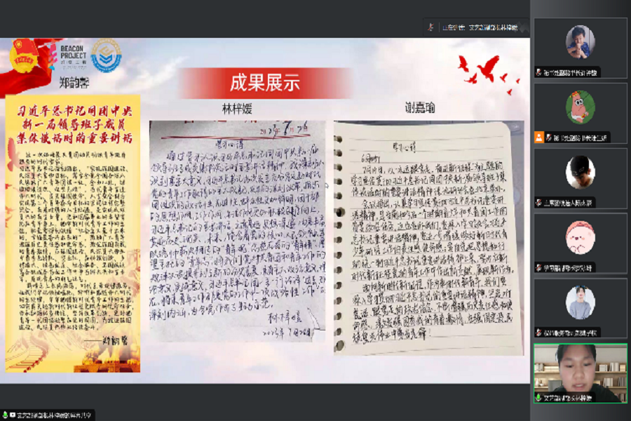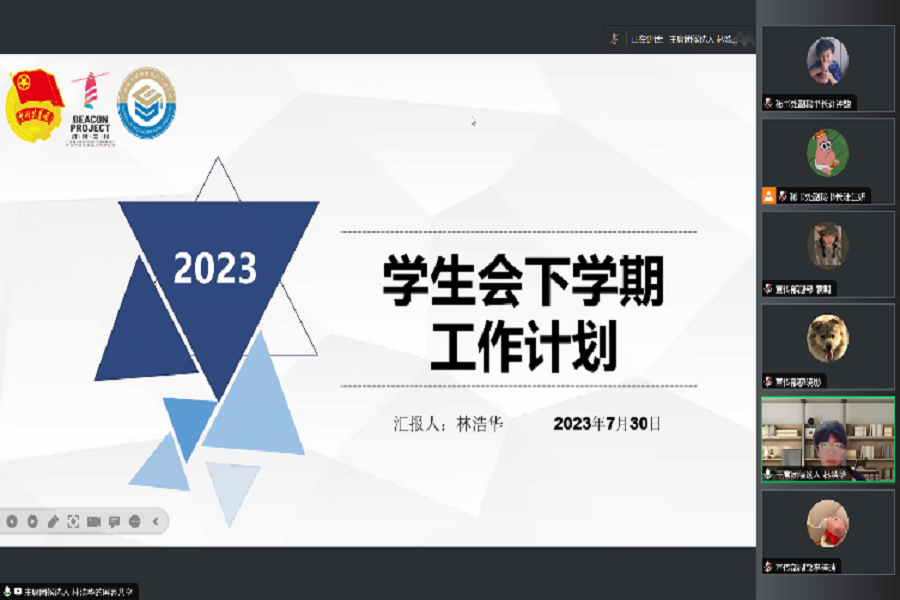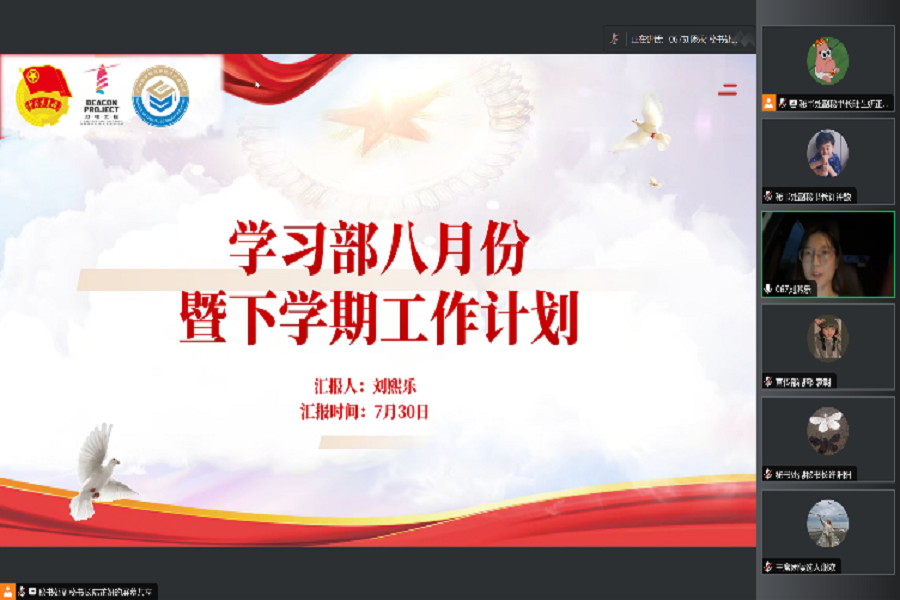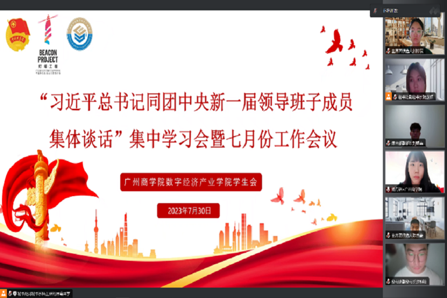 为深入学习宣传贯彻习近平总书记的重要讲话精神,深刻感悟其对青年工作的高度重视、对广大青年的殷切期待,深化思想政治引领,数字经济产业学院学生会于7月30日晚在腾讯会议开展数字经济产业学院学生会“深思善行明大局,苦干实干谱新章”七月例会。团委副书记兼学生会指导老师杨丹铭及学生会全体成员出席本次会议。
