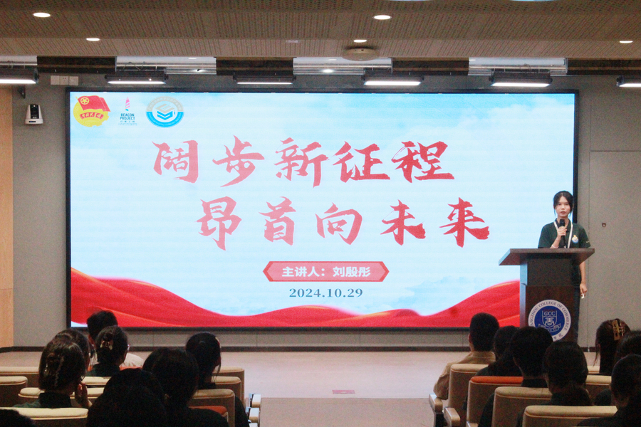紧接着,刘殷彤向新团学成员们介绍了团委组织和学生会组织的基本架构,详细规范团学成员的日常行为举止,要落实言行得体、遵规守纪的要求,展现出团学成员的良好精神风貌和优秀素养。最后她表达了与团学成员们携手共筑团学建设的美好愿景。