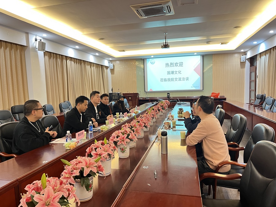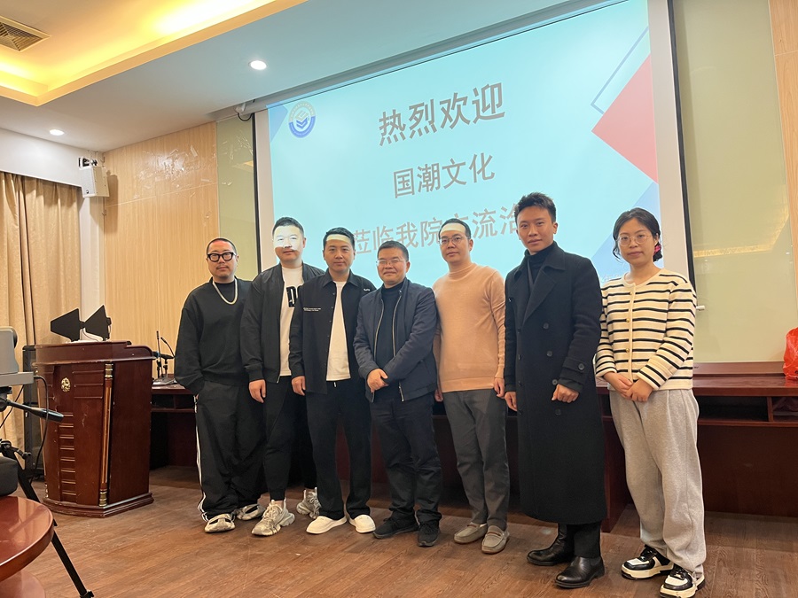 3月5日上午,广州国潮文化总经理曹国栋、经理刘文强、运营总监赖霜、技术总监曹国倾一行人莅临数字经济产业学院交流洽谈,出席本次会议的有数字经济产业学院常务副院长舒光美、校企合作专员刘宇宏、电子商务教研室专任教师余腾。