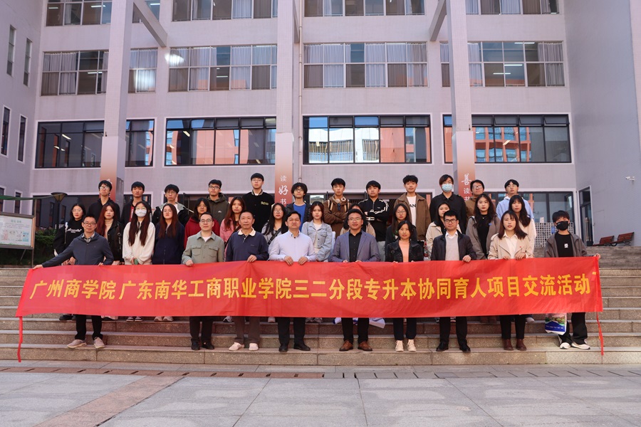 为推进“三二分段”专升本联合办学工作,提升人才培养质量,12月8日,广东南华工商职业技术学院教师赖志聪、佘碧蓉携学生代表团到访数字经济产业学院进行“三二分段”专升本协同育人合作项目交流。我校招生办副主任陈敬宗、数字经济产业学院党总支书记汪椿东、主任吴光双、教师陆川、余腾对赖志聪一行进行了接待。