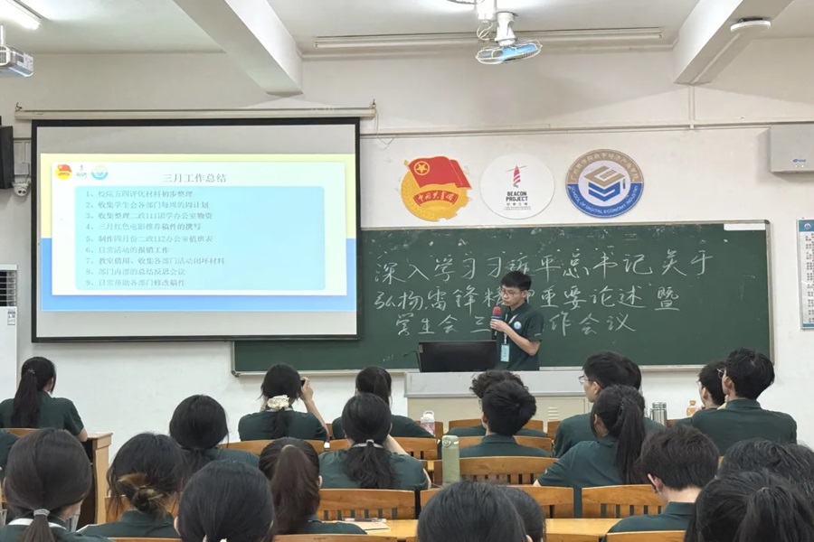 会议尾声,何杰安对会议进行总结。他对各部门三月份工作表示肯定,同时对学生会全体成员提出两点要求:一是要提升稿件撰写能力,多看多写多练,锤炼语言表达,在不断地修改与打磨中练就扎实的文字功底,提升稿件质量;二是要加强沟通协调能力,建立健全的部门间协调配合机制,打破信息壁垒,推进各个活动协调开展,提高学生会工作效率。