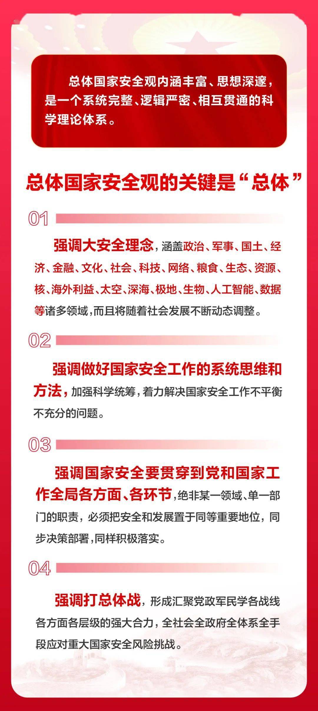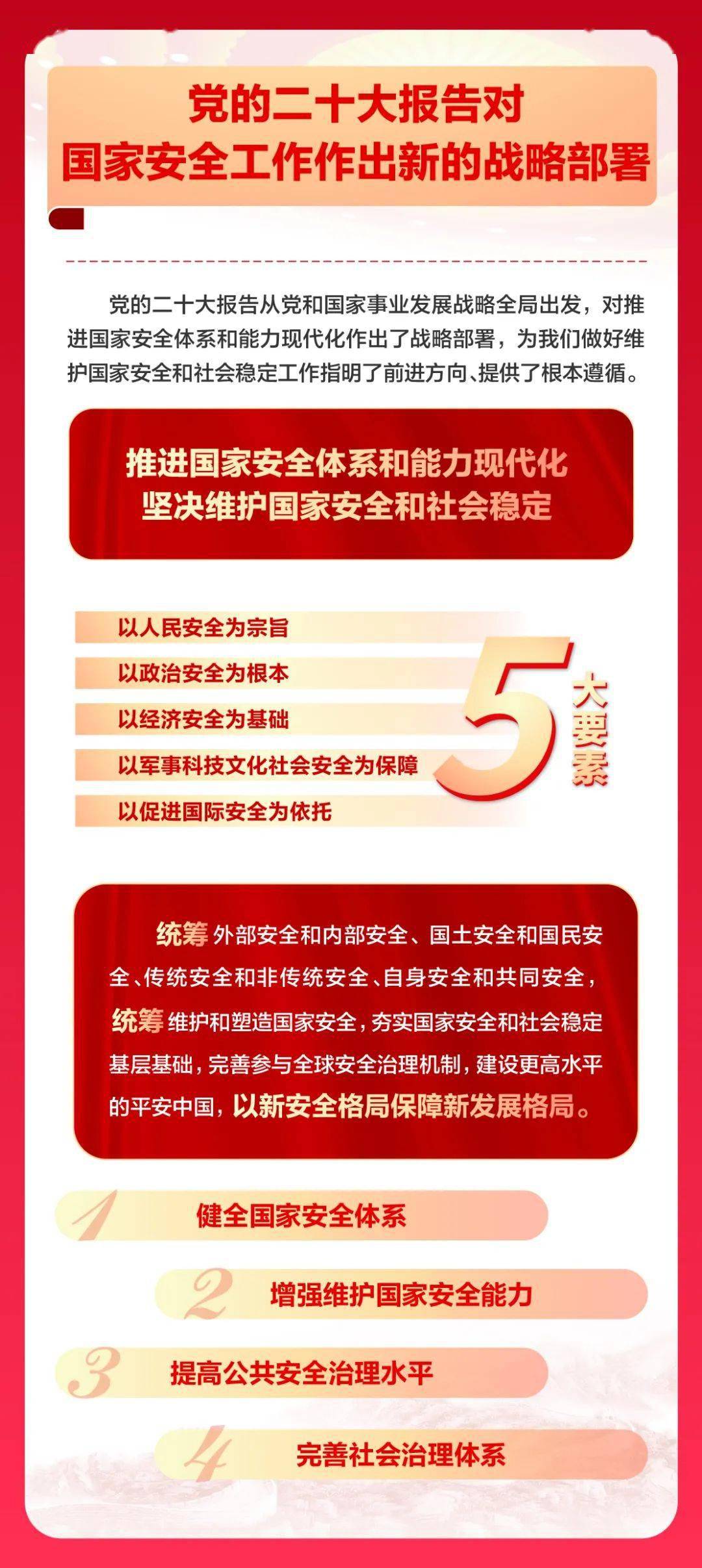 贯彻总体国家安全观,增强全民国家安全意识和素养,夯实以新安全格局保障新发展格局的社会基础。