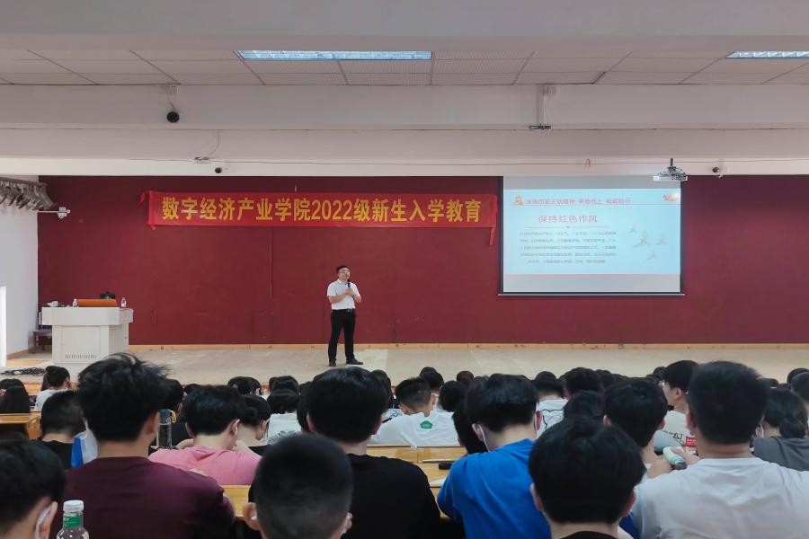为迎接党的二十大胜利召开,加强对新生的理想信念教育,帮助新生尽早确立大学新阶段的目标,积极向党组织靠拢,端正入党动机,熟悉入党流程。数字经济产业学院于9月20日上午在第一教学楼206举行了“喜迎二十大,一起向未来”书记第一课暨入党启蒙教育。数字经济产业学院党总支书记汪椿东、2022级辅导员杨丹铭、陈雅玲,新生助理辅导员以及全体新生共同参与本次会议。本次会议由汪椿东主讲。