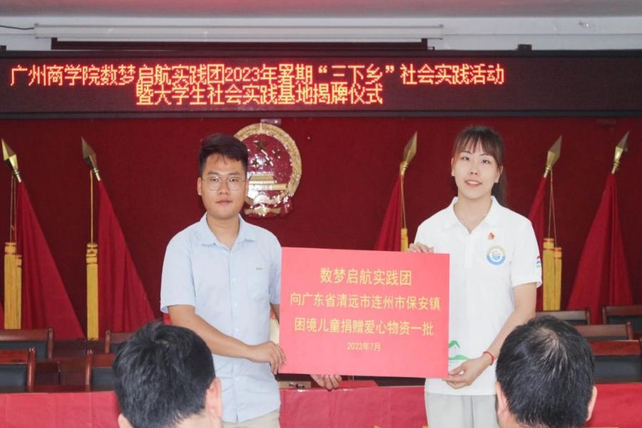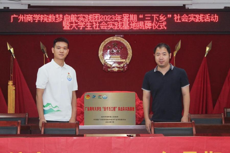 为深入学习贯彻习近平新时代中国特色社会主义思想,全面领会习近平总书记关于青年工作的重要思想的丰富内涵,引导大学生深入乡村开展暑期“三下乡”社会实践活动,推动清远市连州市保安镇人民政府与广州商学院数梦启航实践团“百千万工程”结对项目的顺利开展,为保安镇乡村振兴助力赋能,数字经济产业学院数梦启航实践团于7月11日上午在清远市连州市保安镇人民政府组织召开2023年暑期“三下乡”社会实践活动开营暨大学生社会实践基地揭牌仪式。