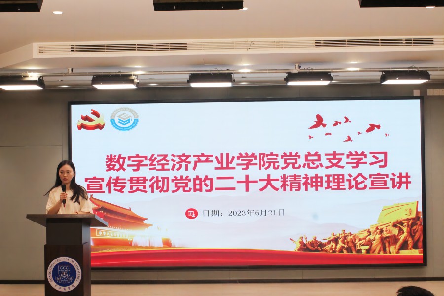 为学习贯彻党的二十大精神,提升新时代青年的精神品格和价值追求,积极引导青年加强党性思想建设,准确把握党的二十大精神的实质和丰富内涵,充分发挥青年党员模范带头作用。数字经济产业学院党总支于6月21日中午在第八教学楼204组织召开学习宣传贯彻党的二十大精神理论宣讲。出席本次会议的有马克思主义学院教授王立云、数字经济产业学院党总支组织员杨红烨、学生第二党支部书记袁小蕾、学生第三党支部书记王政、全体学生党员、发展对象和入党积极分子。