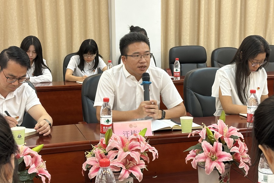此外,双方还围绕广东省青年大学生“百千万工程”突击队行动进行了经验交流。王纤芸团队针对清远连州保安镇的农产品滞销问题,利用数字经济产业学院特色专业优势,开展直播带货、电商培训等,有效提高了农产品销量,并带动了乡村青年投身数字化时代。罗诗涵团队则以“红色+绿色”为核心理念,结合汽车与交通工程学院专业特色,详细展示了团队在普宁市南径镇以实际行动推动绿美乡村振兴、传承非遗文化的实践历程等。双方共同探索交流了党建引领乡村振兴的经验做法。