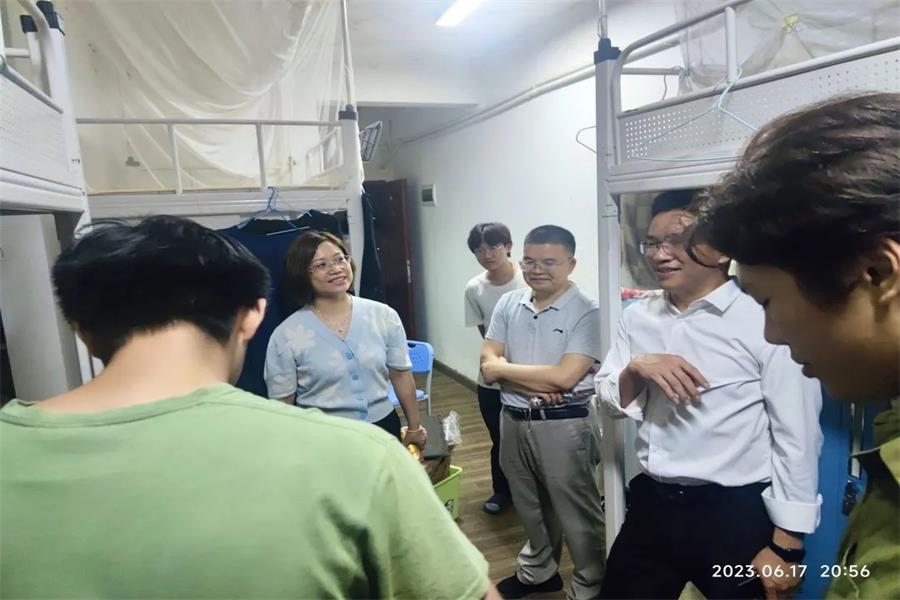 为进一步做好2023届毕业生离校服务,秉承“贴近实际、贴近需求、贴近学生”的工作原则,切实保障毕业生安全离校、温暖离校。6月17日晚,数字经济产业学院开展了2023届毕业生温暖离校工作,数字经济产业学院常务副院长舒光美、副院长白丽、党总支书记汪椿东和毕业班辅导员一起走访了毕业生宿舍,深入了解毕业生的就业与个人情况等,同时表达了学院对毕业生的深切关怀和美好祝愿。