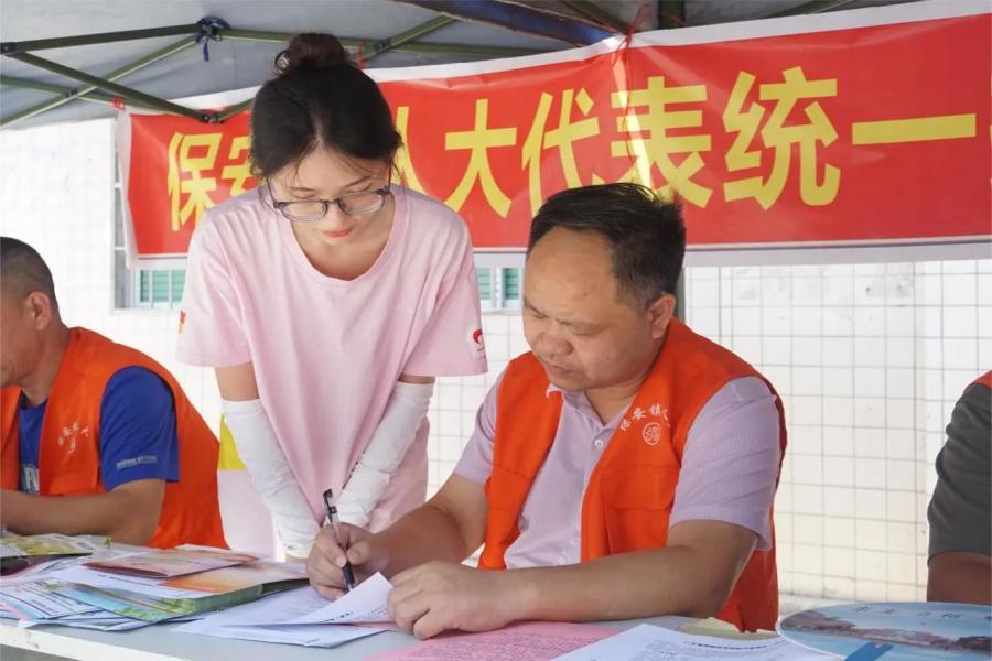 同时,保安镇人大代表与数梦启航实践团于保安镇人大代表办事处门口共同设立资助政策咨询摆摊点,积极向来往的村民发放宣传手册,面对面为其宣传讲解国家资助政策的具体内容,帮助村民们更好地理解政策细则,并对学生及家长进行问卷调查,掌握学生及家长对国家资助政策的了解程度。本次活动更是得到了保安镇人民政府的高度重视与大力支持,保安镇党委副书记、镇长欧阳文初亲临活动现场,与实践团成员共同进行政策宣讲。