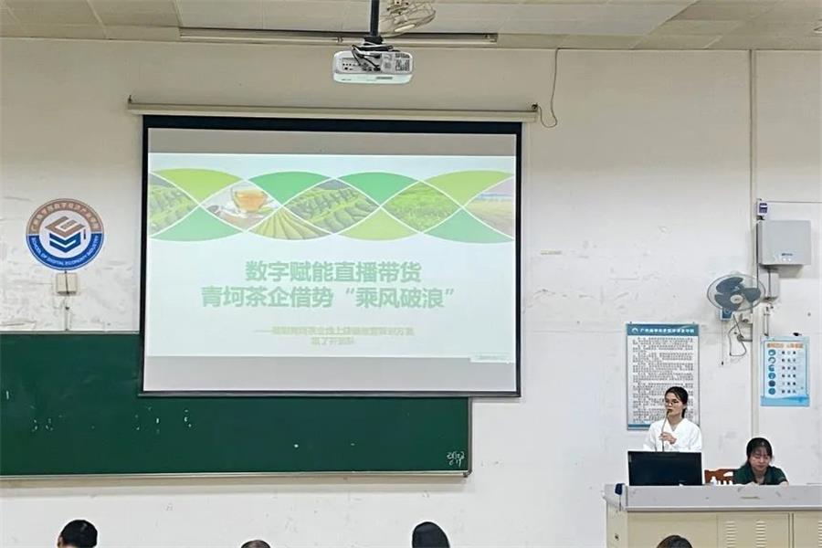 深入学习贯彻党的二十大精神,激励着我们不断发扬创新精神,勇于担当作为,落实新发展理念。随着数字经济时代到来,电子商务模式也在不断地发展和改变,为深化学生对于数字经济的专业认知,展现大学生积极肯向上、创新有作为的精神风貌,广州商学院数字经济产业学院于6月19日晚在第四教学楼308举办“数字驱动发展·电商赋能经济”电商方案策划大赛决赛,出席本次比赛的嘉宾有数字经济产业学院专任教师张士华、专任教师周倜、专任教师董禹含、团委副书记,学生会指导老师杨丹铭。