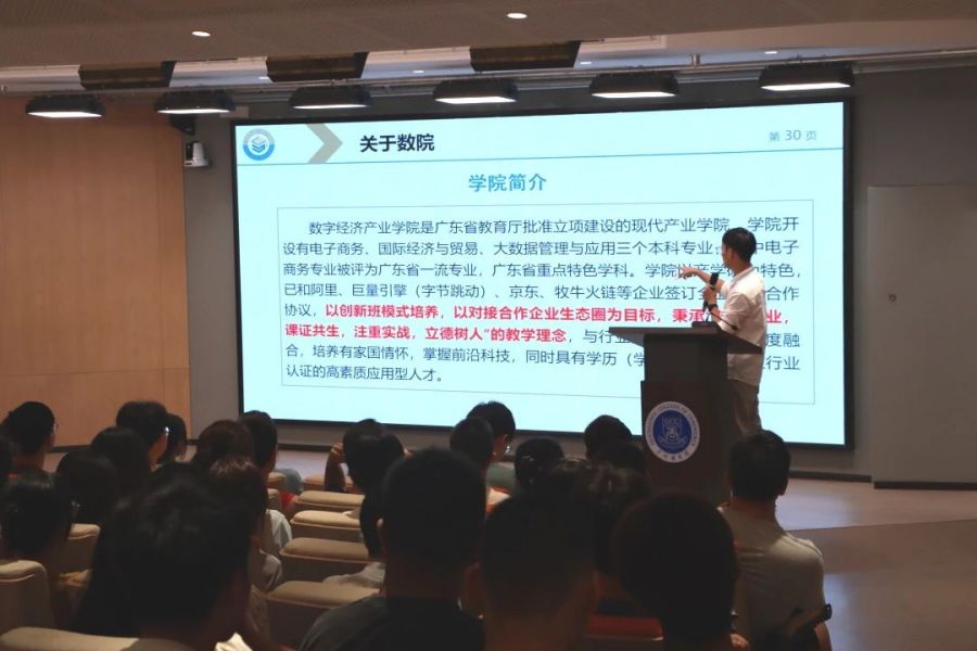 为扎实做好新生教学管理工作,帮助新生更快地融入大学生活,深入了解学校规章制度,以良好的精神面貌迈向新征程。数字经济产业学院于9月11日下午在八教203召开2023级新生适应性教育。2023级新生辅导员翁佳霖、杨应涛,全体助理辅导员及2023级全体新生出席本次会议。