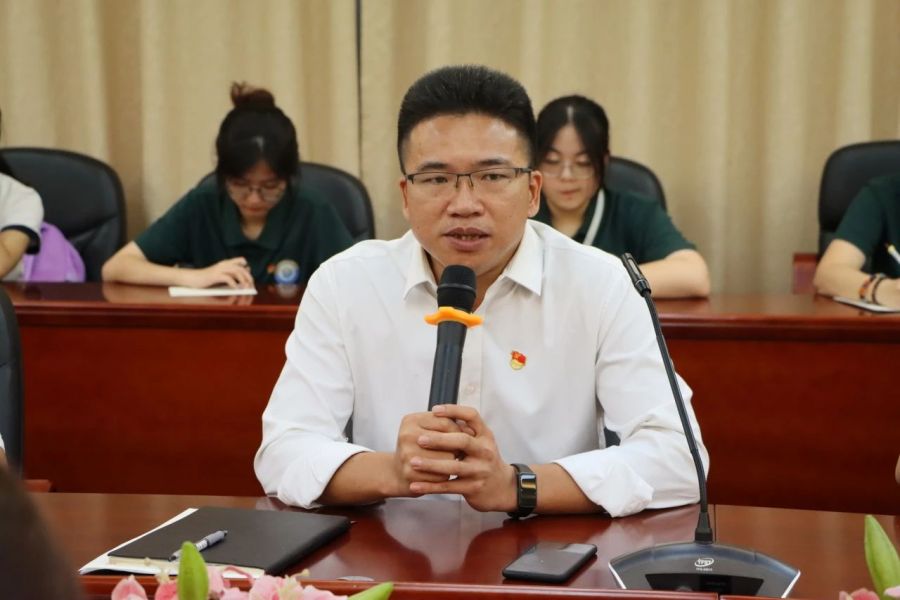 2023级新生辅导员翁佳霖从新生报道流程、协助新生报道注意事项、迎新应急准备等方面所需要的细节进行了疏导。他强调工作人员在工作中需要做好万全准备,认真负责完成各项工作,并鼓励工作人员在接下来的迎新工作中,能够用最饱满的工作热情,认真务实的工作作风,为2023年迎新工作贡献自己的力量。