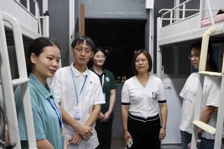 为深入了解新生宿舍生活情况,普及寝室生活须知,切实解决新生入住以来遇到的实际问题,帮助新生更好地融入集体。数字经济产业学院于9月9日-10日晚开展2023年新生宿舍走访工作,数字经济产业学院常务副院长舒光美、副院长白丽、党总支书记汪椿东、2023年新生辅导员杨红烨、袁小蕾、翁佳霖、杨应涛及全体助理辅导员一起走访宿舍看望新生,为新生送去温暖与问候。