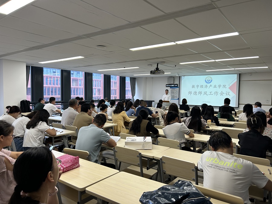为进一步弘扬高尚师德,营造良好的开学氛围,确保新学期各项工作平稳、有序、高效开展,9月8日下午,数字经济产业学院召开2023年秋季学期开学工作暨师德师风建设工作会议,学院常务副院长舒光美、副院长白丽、党总支书记汪椿东出席会议。数字经济产业学院全体教职工参会,办公室主任吴光双主持大会。