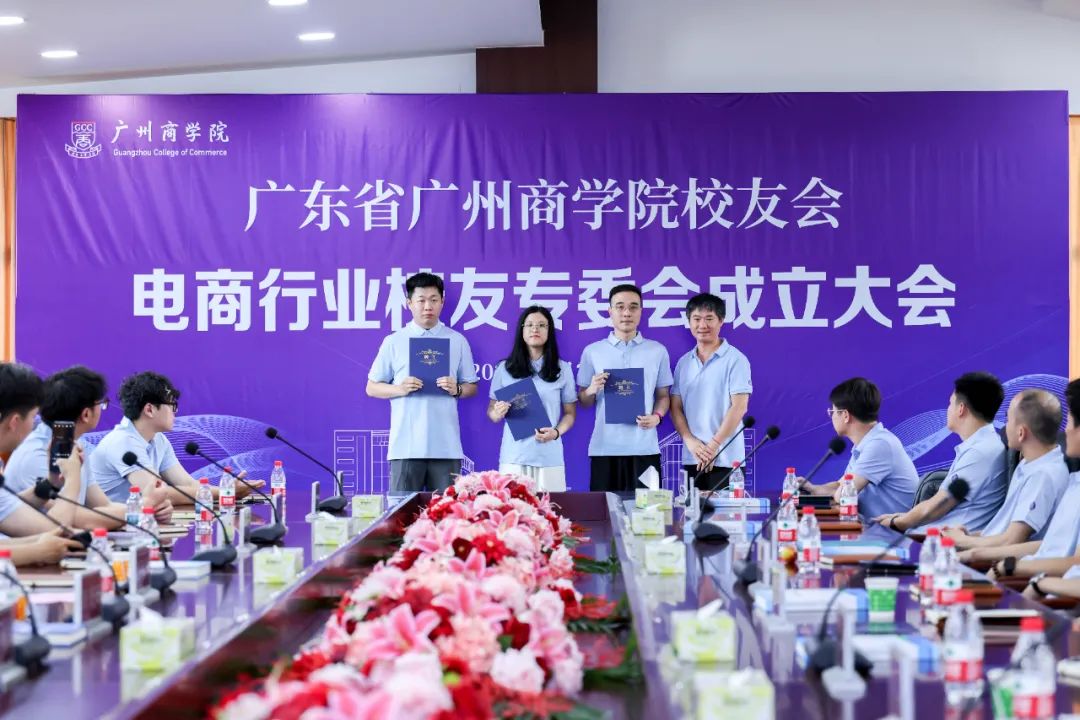 翁楚歆等校方老师为电商行业校友专委会授牌,并为当选的负责人颁发聘书。全体理事郑重宣誓承诺,遵守本会章程,落实《广州商学院校友会发展规划》,团结会员,肝胆相照,荣辱与共,恪尽职守,不负使命。